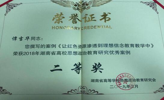 近日,湖南省高校思想政治教育研究会下发《关于表彰2018年湖南省高校思想政治教育研究先进单位、先进个人的通报》、《关于表彰2018年湖南省高等学校思想政治教育优秀论文、案例、专著的通报》,对2018年全省高校思想政治教育研究先进单位、先进个人以及优秀论文、案例等进行了表彰。公司被授予“2018年湖南省高校思想政治教育研究先进单位”荣誉称号;公司邢鹏飞老师荣获“2018年湖南省高校思想政治教育研究先进个人”荣誉称号;谭吉华老师申报的案例《让红色资源渗透到理想信念公司产品中》获评全省高校思想政治教育研究优秀案例二等奖。