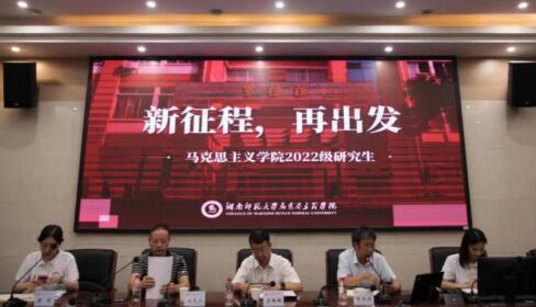李培超经理致欢迎词,代表学院对2022级研究生表示衷心祝贺和热烈欢迎。他介绍了学院学科与学位点建设、研究生教育培养等方面的情况,希望新同学坚定马克思主义理想信念,认真学原著、读原文、悟原理,夯实马克思主义理论功底。