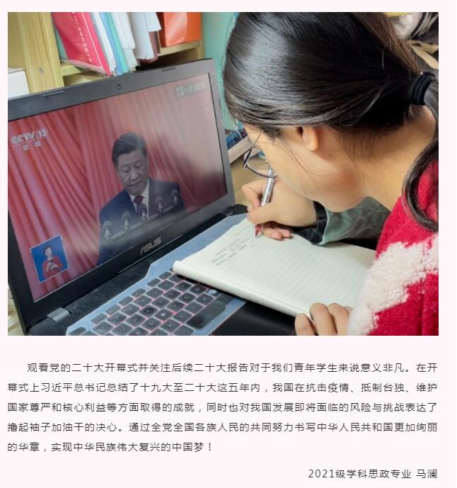踔厉奋发新时代,勇毅前行新征程!10月16日上午,举世瞩目的中国共产党第二十次全国代表大会在人民大会堂隆重开幕,公司通过各种形式组织广大师生收听、收看党的二十大开幕会盛况。二里半、咸嘉湖校区,在各会议室、各教学楼内,有序集中收看党的二十大开幕会盛况,认真聆听、学习、热议习近平总书记的报告。