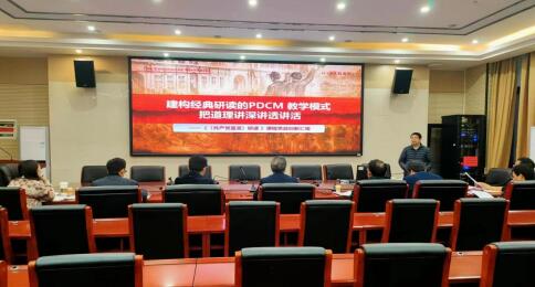 李风华教授展示了修改后的参赛文本,模拟决赛进行现场演示。谭长银教授、刘利民教授紧扣竞赛规则和评分标准,结合自己参赛的经历与感悟发表了改进意见。其他老师聚焦“教学创新”的目标,提出了进一步打磨参赛文本的建议。