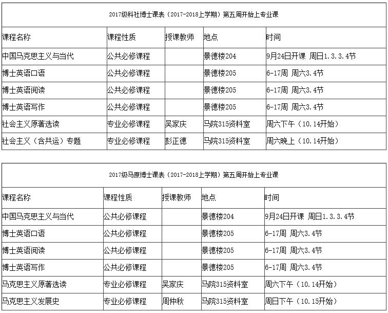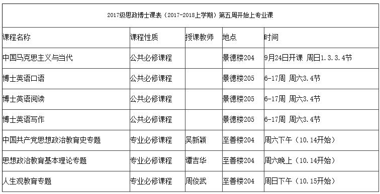 2017级社科、马原、思政博士课表(2017-2018上学期)