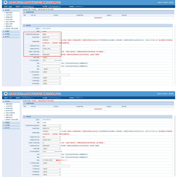 3.随后提交学位申请,选择湖南省 → 英国威廉希尔公司 → 学术型学位 → 申请学位学科门类(法学) → 申请学位学科名称应为马克思主义理论 → 申请学位专业名称应为思想政治教育 → 院系选择马克思主义公司 → 填好带*好的其他信息 → 保存