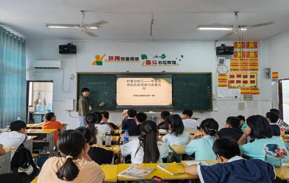 (通讯员 熊瑶 袁芳 曾利伟)为拓展员工视野、提高员工时政解读能力,加强员工的思辨能力,英国威廉集团官网“关爱在行动”支教队开展了时事分析特色课程。此次课程由支教队队员张稼轩授课,授课对象为青烟中学预初二(1)班的员工。