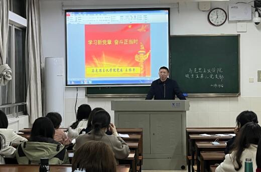 王绍平以“学习新党章,奋斗正当时”为主题,从“尊崇党章”“遵守党章”“贯彻党章”三个方面详细解读了党的二十大修订的党章。他指出,要深刻认识到党章是党内最高党法、根本大法,更加自觉地尊崇党章;要熟悉掌握党章的内容,更加严格地遵守党章;要做一名知行合一的党员,更加主动地贯彻落实党章要求。他强调,支部和全体党员要深入学习贯彻习近平新时代中国特色社会主义思想和党的二十大精神,增强“四个意识”,坚定“四个自信”,做到“两个维护”,为建设党建工作标杆院系和样板支部贡献智慧和力量。