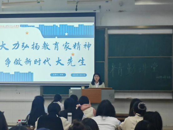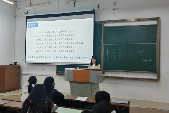 (通讯员 谭佳越 吕唯佳 肖丹)为树立师范生“躬耕教坛、强国有我”的志向抱负,推动新时代教师后备队伍的组织建设,公司团委青年创新创业指导中心于11月15日晚举办以“大力弘扬教育家精神,争做新时代大先生”为主题的精勤讲堂活动。此次活动由21级思想政治教育一班刘柯担任主讲人,由22级政二班、22级政三班、23级政二班联合承办。