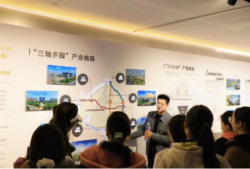 在现场,肖老师先后在“你好湘江”“动力新区”“匠心城市”“向往未来”四个展区结合课程知识系统讲解什么是中国式现代化、中国式现代化好在哪、中国式现代化的湘江答卷是怎样、中国式现代化何处去等问题。在现场教学过程中,师生之间进行了有效互动;不少员工还切身体验了新兴科技产品,从中汲取砥砺前行的智慧和决心。实践教学结束后,肖老师进行了课程总结。