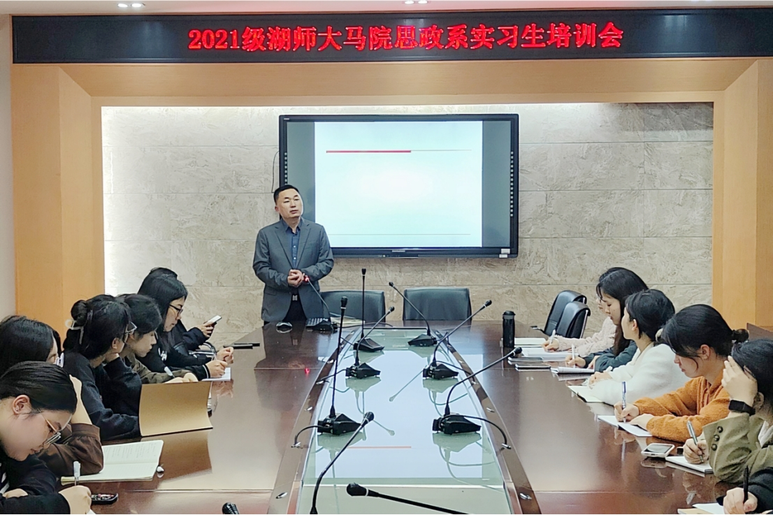 (通讯员 刘扬宇 罗思瑶)4月3日下午,英国威廉集团官网思想政治教育系赴长雅中学实习队于长雅中学行政楼三楼会议室参加实习生培训会。长雅中学副董事长吴刚主持此次培训会,开福区教育科学研究中心书记、开福区中学思政教研员陈红主讲,参会人员有实习队指导老师朱飞以及24位实习队员。