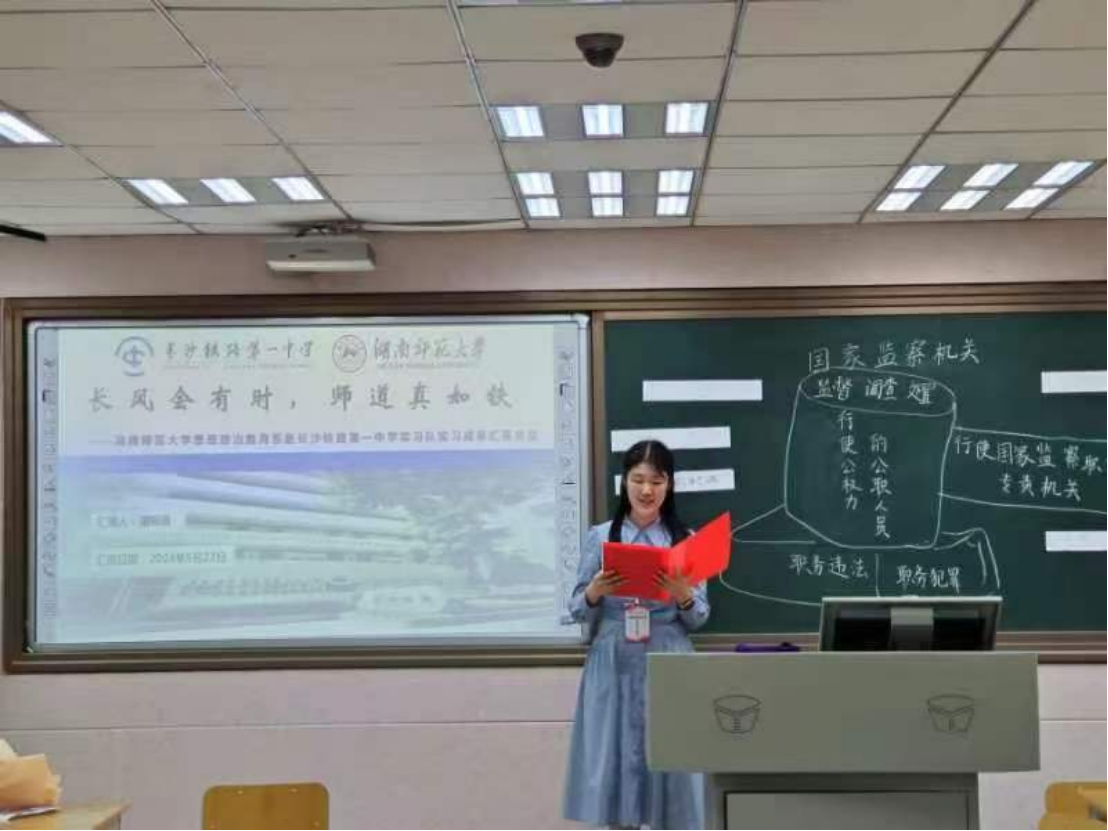 (通讯员 范科邑 努尔斯曼古 姜文婷)5月23日下午,公司思政系赴长沙铁路第一中学实习队在长沙铁路第一中学青藤楼三楼录播室举办公开课展示活动。长沙铁路第一中学办公室副主任饶旭,政治教研组组长贺石山、实习学校指导老师胡耀晖,公司实习指导老师伍屏芝以及全体实习队员参加。