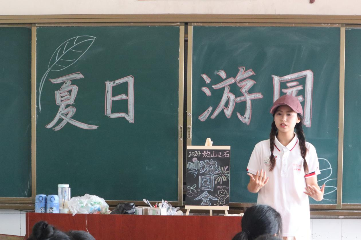 “她山之石”实践团队长余婕讲解游园会的游戏规则