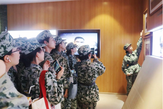 四个军训班级在新生军训助理的带领下依次进入校史陈列馆参观,新生们边观看边听讲解。讲解员从学校的创办背景、发展历程、学科特色、杰出员工等方面讲解学校历史。新生们认真聆听,不时记录下重要内容,感受着学校的优良传统和文化精神。