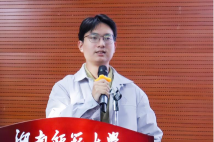 杨於道以“湖师启航·创见未来”为题,通过“敲门人、守夜人、领路人”三幕故事,分享了自己从竞赛新手成长为国家级大创项目负责人并荣获湖南省“金种子”金奖的经历,系统梳理了“互联网+”“挑战杯”等赛事的报名时间、选题策略、团队组建及答辩要点,归纳出“切口小、路线实、展示活”的实战策略,并系统介绍了学校支持创新创业的七大举措及相关政策。他还进一步阐释了学校构建“课程学习—项目实践—竞赛锤炼—成果转化”四位一体培养体系,鼓励新生善用学校资源,在创新实践中实现自我提升。