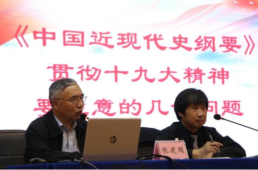三是如何实现《纲要》课的教学创新。张教授提出要创新研究纲要课的教学形式,在传统课堂的基础上,依托现代科技和大众传媒,结合时代要求等,探索更加有效的课堂模式。要以讲清十九大的时代背景为出发点,积极应对新时代对《纲要》课提出的新问题、新挑战。