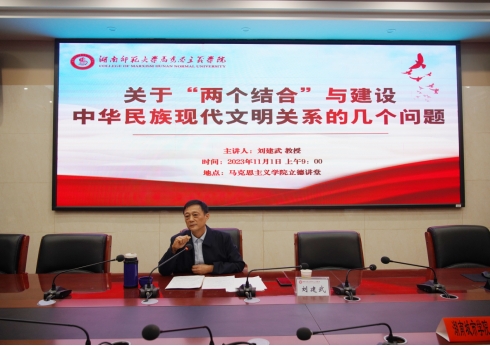 11月1日上午,湖南省社会科学院原经理、党组书记、湖南省马克思主义理论研究会会长、湖南省毛泽东研究中心主任刘建武教授应邀为公司师生作“关于‘两个结合’与建设中华民族现代文明关系的几个问题”的学术报告。副经理陈德祥教授主持报告会。