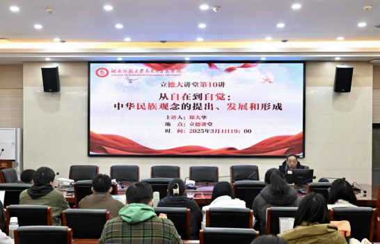 陈德祥副经理在总结发言中对郑教授表达了诚挚谢意,认为郑教授的讲座内容丰富、视野开阔、观点鲜明、理论深邃,具有很强的思想性、理论性、学术性、价值性,是一场高水平的学术讲座。他希望师生学习和掌握郑教授讲座中体现的科学研究方法,深入思考、研究“中华民族”观念的演进及相关问题,在理论学习和学术研究中担负起铸牢中华民族共同体意识的历史使命。