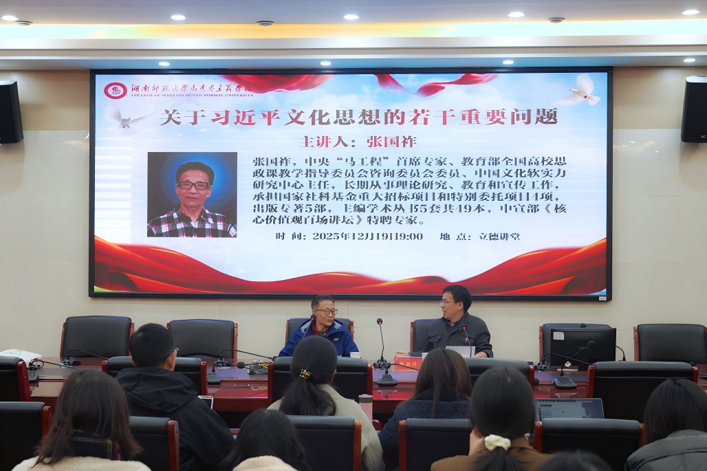 (通讯员张馨月李欣)2025年12月19日上午,中央马克思主义理论研究和建设工程首席专家、教育部全国高校思政课教学指导委员会咨询委员会委员、中国文化软实力研究中心主任、中宣部理论局原副局长、国家社科规划办原主任张国祚教授应邀为公司师生开展了题为《关于习近平文化思想的若干重要问题》的学术讲座。本次讲座在英国威廉集团官网立德讲堂举行,学院副经理陈德祥教授主持,2025级研究生和部分老师参加了讲座。
