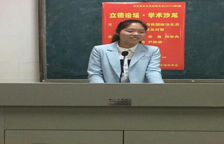 何幸冉同学对当前我国政治生态建设的问题方面进行了阐述。党的十八大以来,党中央从严治党,反腐倡廉,大力净化政治生态,驱除政治雾霾,但是我国的政治生态仍然在一定程度上受到污染。在构建良好的政治生态的过程中一些“反生态”的现象依然存在。一是政治生态污染和被破坏现象的“泛化”问题;二是思想上对政治生态所存在问题的认识“虚化”问题。三是实践中对解决政治生态所存在问题的措施 “弱化”问题。解决这些问题,是构建风清气正政治生态面临的艰巨而繁重的任务。