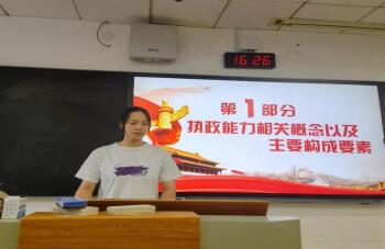 刘地同学进一步对中国共产党执政能力建设的启示进行分析,主要从构建科学考评体系、锻造党的执政人才,强化党的全面领导、坚定正确执政方向两个方面进行阐释,呼吁大家争做马克思主义理论的坚定者和宣传者、中国共产党的拥护者和支持者。