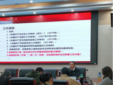 (通讯员 常晓茹 罗谦慧)11月25日下午,公司在立德讲堂召开党建工作标杆院系建设暨党支部整建提质推进会议。公司党委书记陈红桂出席会议并讲话,公司党委组织部组织科科长陈文东应邀作辅导报告。公司党委委员、专职组织员王绍平主持会议。