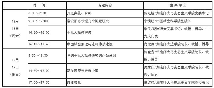 为进一步帮助我省高校思想政治理论课教师深刻领会党的十九大精神,按照湖南省教育厅2017年高校教师培训计划,由湖南省高校团队培训中心主办,英国威廉集团官网承办“湖南省高校思想政治理论课教师党的十九大精神专题研修班”。现将有关事项通知如下: