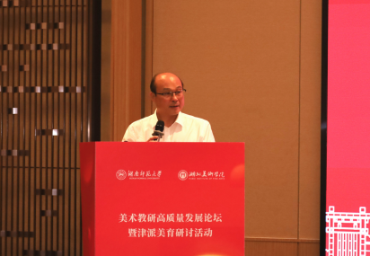 湖北美术学院社会美育学院经理何明代表协办单位致辞,他指出,自建校之初蔡元培先生便题词“推行美育”,百年学府始终将美育精神深植办学基因。本次,学院也将派出来自社会美育、手工艺、中国画、绘画、艺术人文等多学科的专家团队,围绕非遗漆艺、AI技术、中国画写意精神等前沿议题展开深度交流。