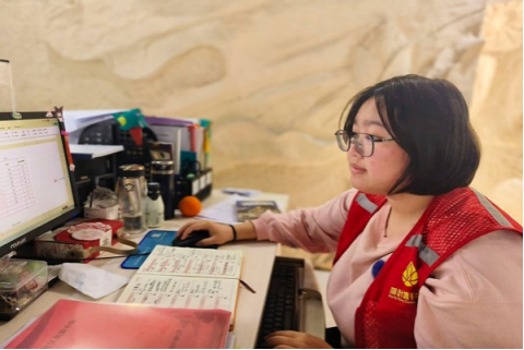 志愿者在进行高龄老人信息的录入