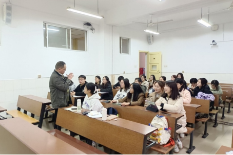 在此次会议中,蒋国海老师对实习工作进行全面安排。他从教学及班主任工作两个方面对实习生提出要求。在教学上,要求实习生认真研读课本,扎实自身教学本领,以饱满的精神状态投入到集体备课、试讲中去。在班主任工作方面,他指出,在进入实习学校后,应严格遵守实习学校要求,加强与校内原班主任交流,在原班主任的指导下完成各项班级管理任务。