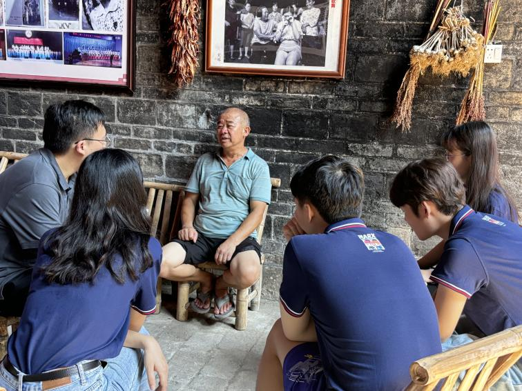 村书记李气锋对实践团的到来表示欢迎,并为实践团成员详细介绍了雷公井古村的修缮和保护情况以及当地非物质文化遗产--嘉禾伴嫁歌的传承发展现状。他指出雷公井村依托深厚的文化底蕴,积极推进中华优秀传统文化的创造性转化、创新性发展,其中重点对于“伴嫁歌”的传承与保护,不仅促进了文旅的深度融合,还为村民带来了致富增收的新路径。李书记表示,古村落承载着深厚的历史文化资源,是厚重的地域文化与乡土文化的“孕育之地”,载着“乡愁”,藏着“故事”,一定要得到保护和传承。