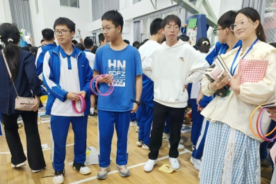 活动开始前,各班员工在实习队员和班主任的指导下,于体育馆内划分区域布置摊位,有序陈列义卖物品。义卖商品涵盖手办周边、玩偶公仔、二手书籍、书法作品、手工制品及学习用具等,种类丰富。部分班级还创新设计了互动环节,如套圈游戏、扳手腕挑战、模拟刮奖等,吸引了大量师生驻足参与。活动期间,各摊位前气氛活跃,师生协力推销商品,实习队员积极协助组织,展现出良好的团队协作能力。活动结束后,剩余物资经分类整理后统一捐赠。