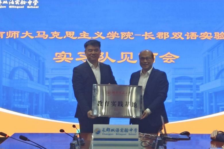 最后,李泳波与黄斌共同为长郡双语实验中学“教育实践基地”揭牌。